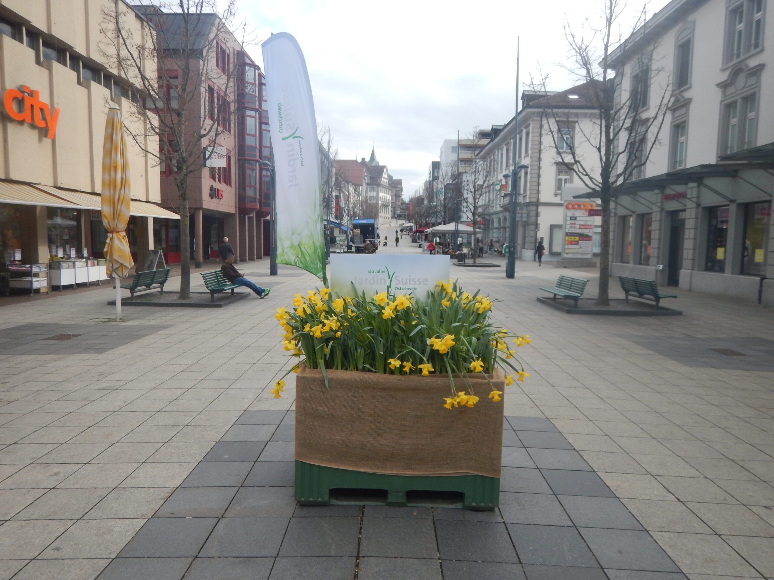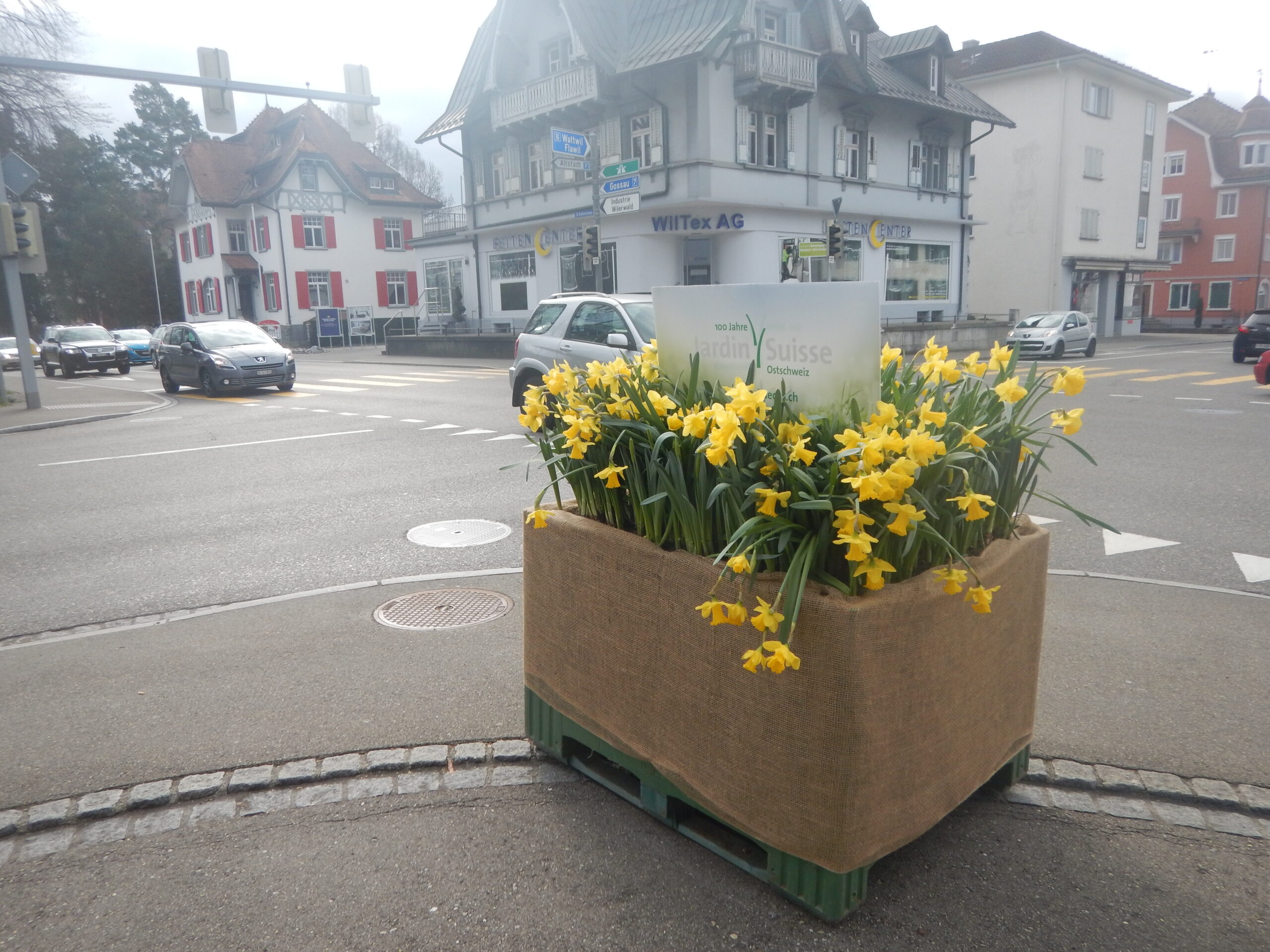 Über Nacht verteilte das Felix Team verschiedene Boxen voll mit Osterglocken in der Stadt Wil. Farbig, leuchtend erfreuten sie Anwohner und Passanten in der ganzen Stadt.