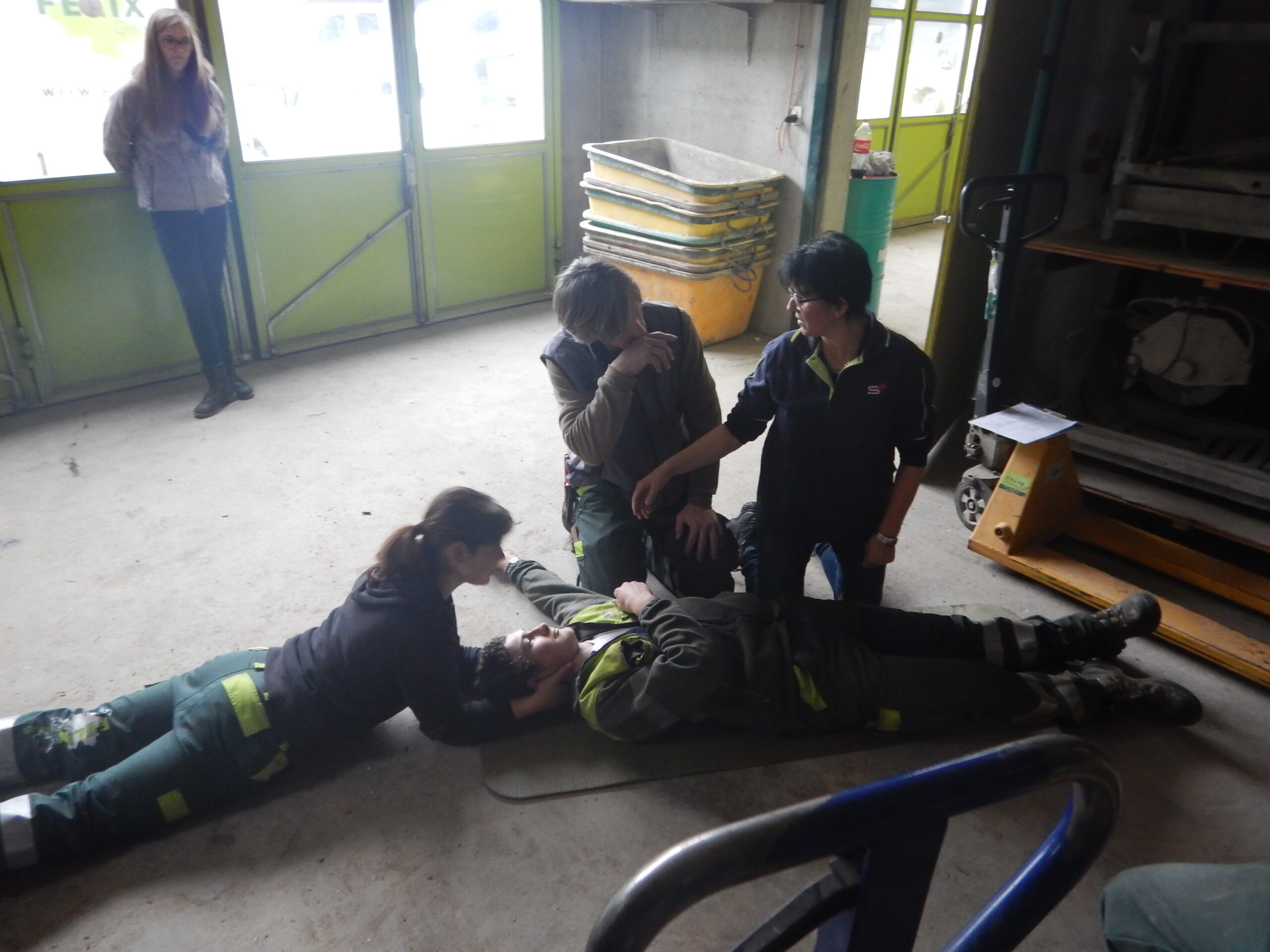 Genau solche Fallbeispiele wurden zusammen mit dem Samariterverein Schönholzerwilen geprobt. Wie lege ich einen Druckverband an und wie lege ich eine bewusstlose Person in die Richtige Lage. Dank den guten Tipps von den Samariterinen konnten wir einiges lernen. Wir hoffen allerdings, dass wir diese Massnahmen nie im Berufsalltag anwenden müssen.