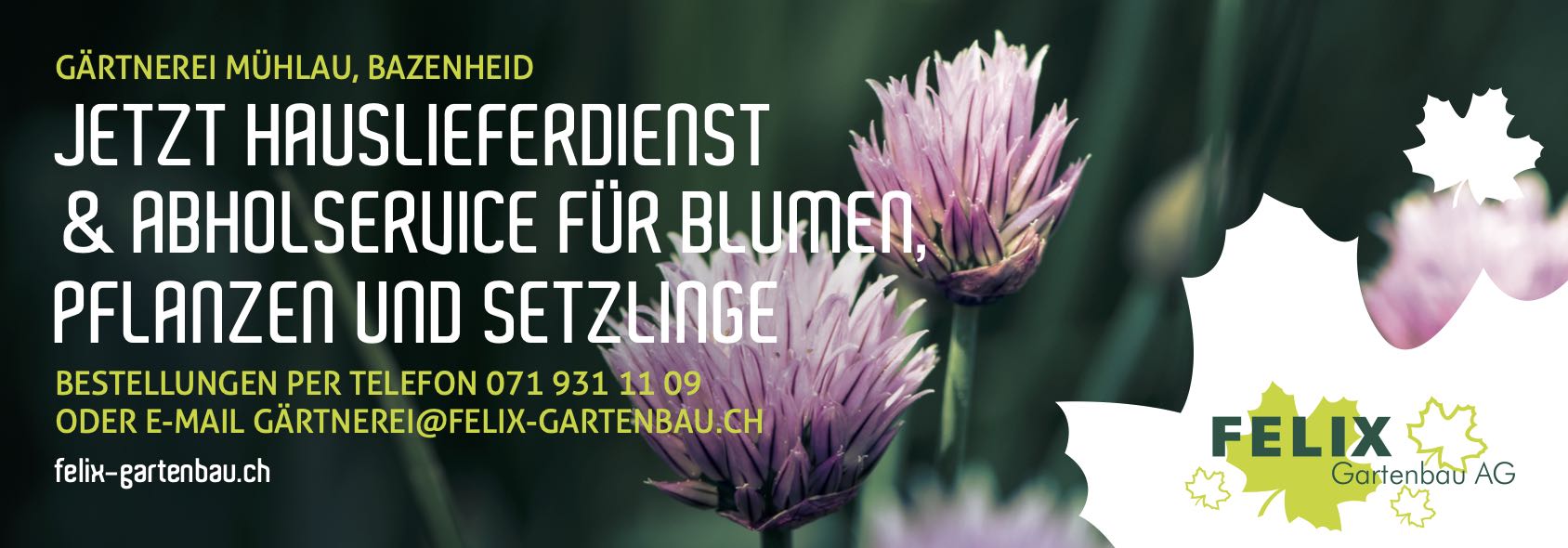 Bestellungen per Telefon 071 931 11 09 oder E-Mail gaertnerei@felix-gartenbau.ch Zu unserem Pflanzensortiment