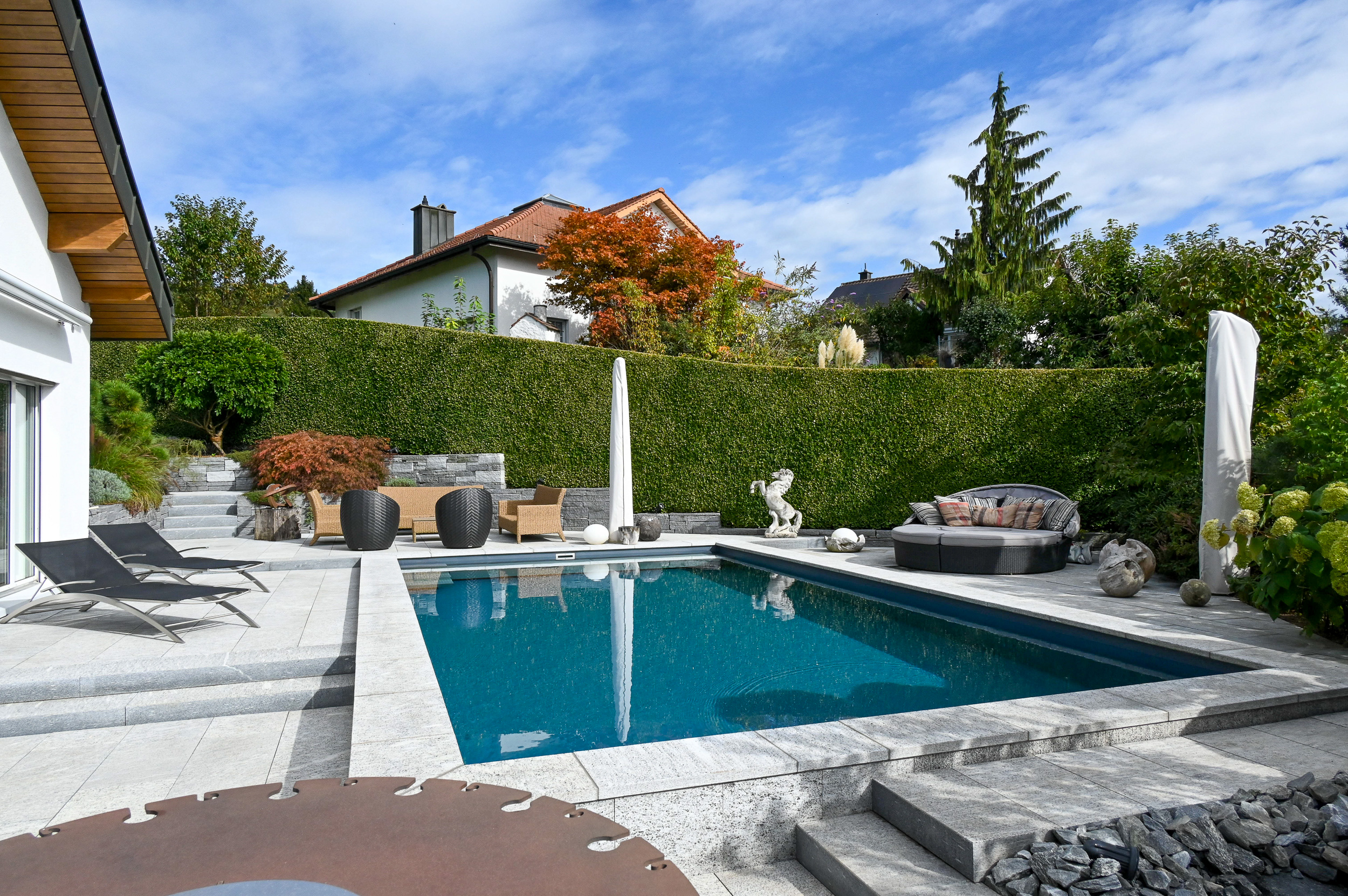 Die Felix Gartenbau AG ist Mitglied des TeichMeister-Partnerverbunds, einem internationalen Netzwerk, das seit 20 Jahren besteht und in dieser Zeit über 4000 Poolanlagen geschaffen hat. Der Markenname TeichMeister steht für professionelle Beratung und fachmännische Installation von Naturpools und Schwimmteichen. Die Felix Gartenbau AG ist eines der wenigen Schweizer Gartenbauunternehmen, das sich als «TeichMeister» bezeichnen darf. Durch diese Kooperation sind wir stets auf dem neuesten Stand der Technik, werden kontinuierlich geschult und tauschen Erfahrungen aus – immer mit dem Ziel, dass die Felix-Schwimmteiche und -Naturpools das höchstmögliche Qualitätsniveau erreichen. Wir unterstützen Sie gerne dabei, Ihren Traum von einem «Meer im eigenen Garten» wahr werden zu lassen.