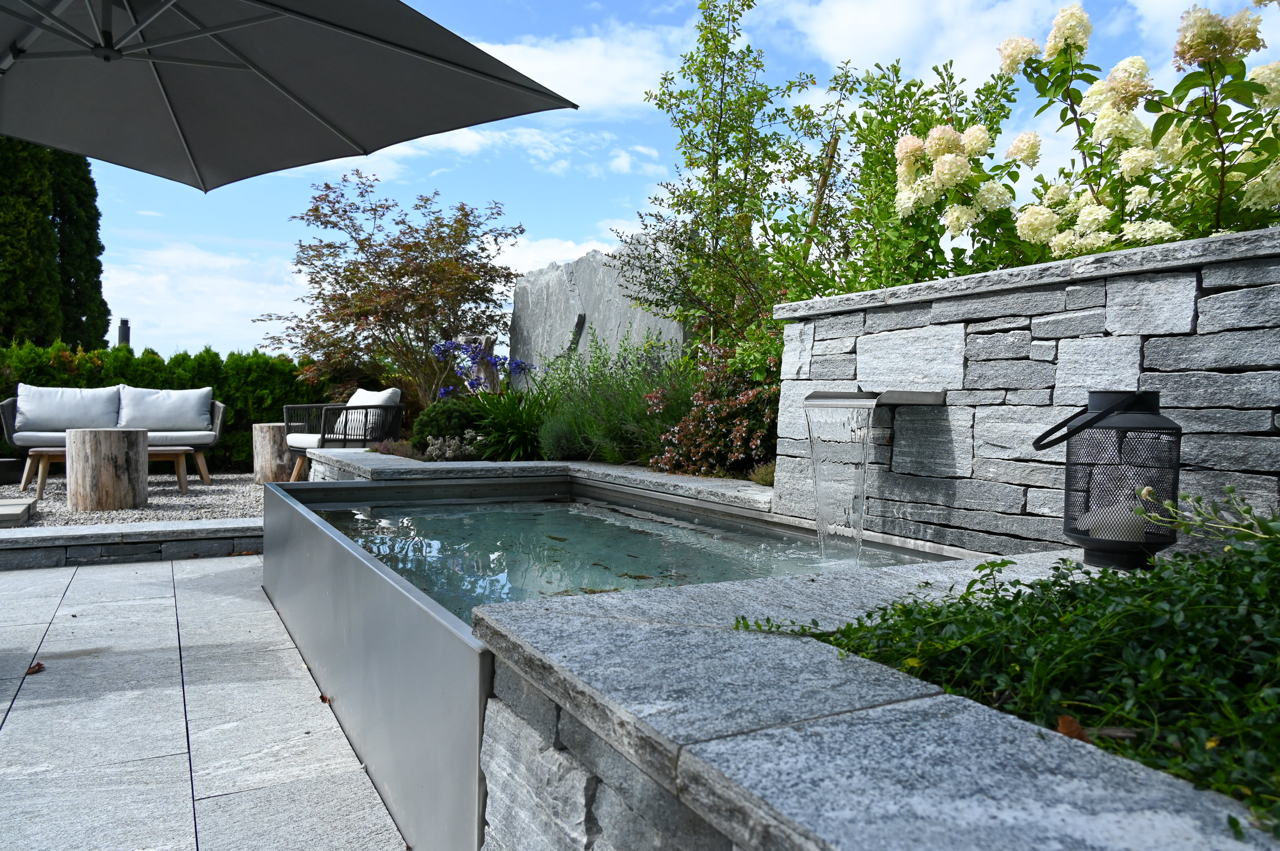 Die Felix Gartenbau AG bietet ein exklusives Sortiment an historischen Wasserelementen, die Ihrem Aussenbereich ein besonderes Flair verleihen. Ebenso gestalten wir moderne Mini-Wassergärten, die perfekt in jeden Garten oder auf die Terrasse passen. Ein Miniteich aus Cortenstahl oder ein individuell gefertigter Wassergarten sorgen nicht nur für erfrischendes Ambiente: Sie garantieren spannende Naturmomente. Spätestens wenn sich Vögel zum Baden einfinden oder Libellen mit ihren schimmernden Flugkünsten begeistern, wird das Wasserelement zum lebendigen Mittelpunkt Ihres grünen Paradieses.