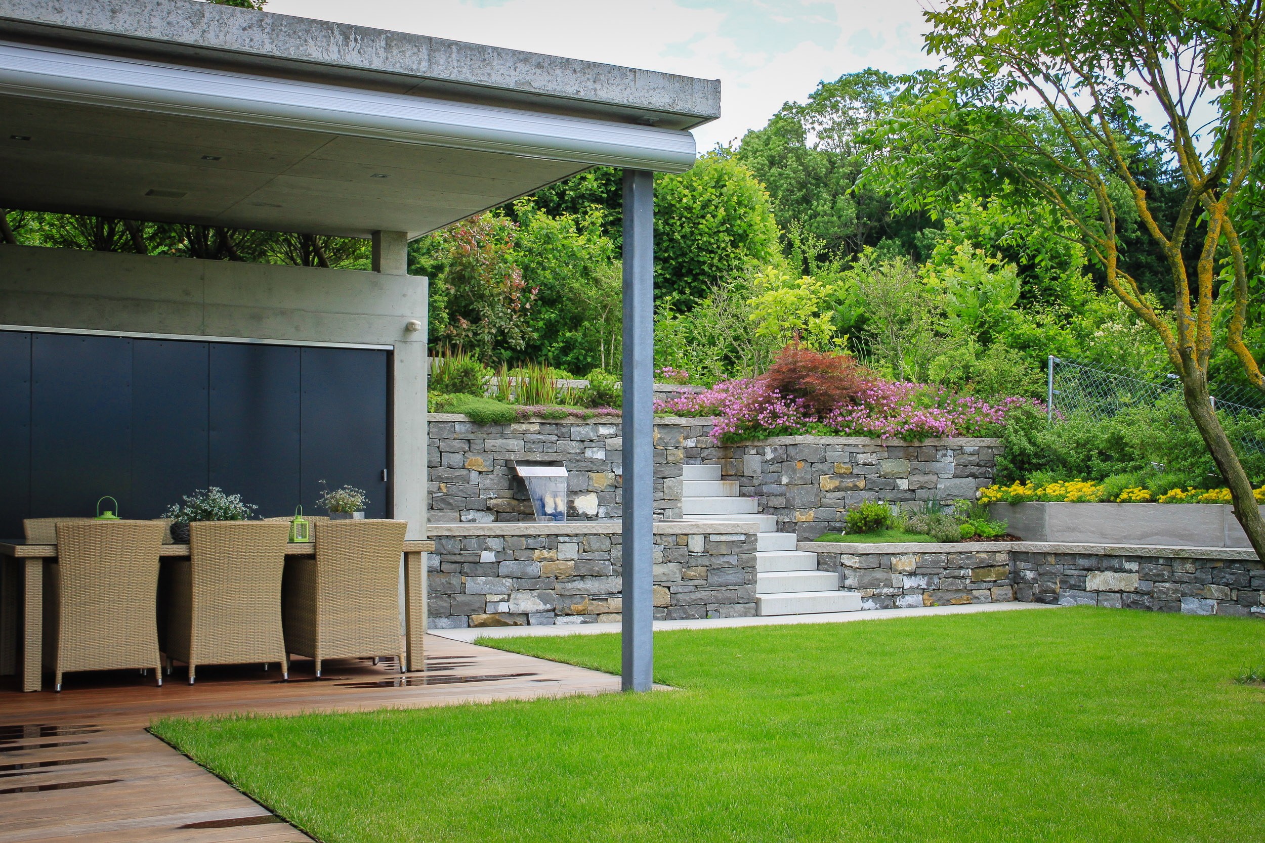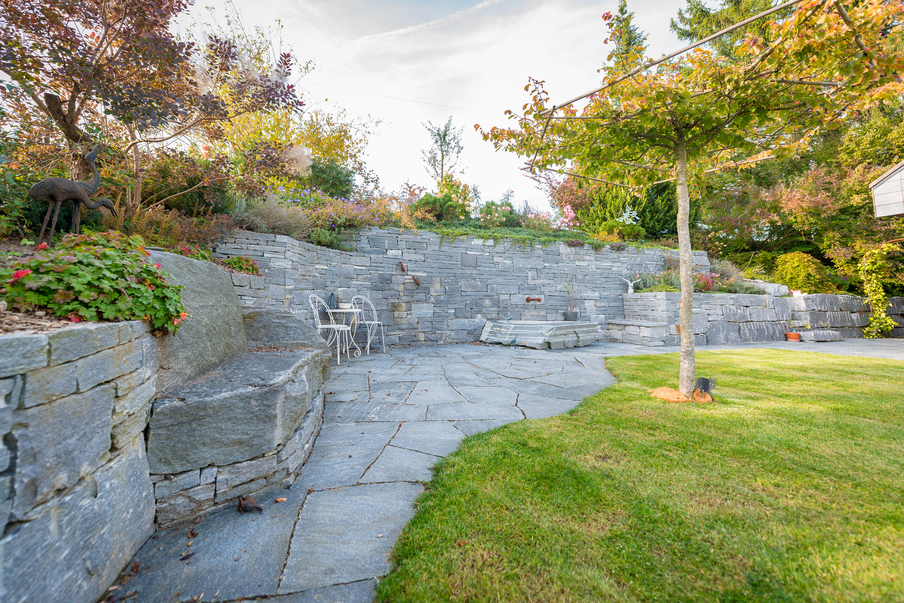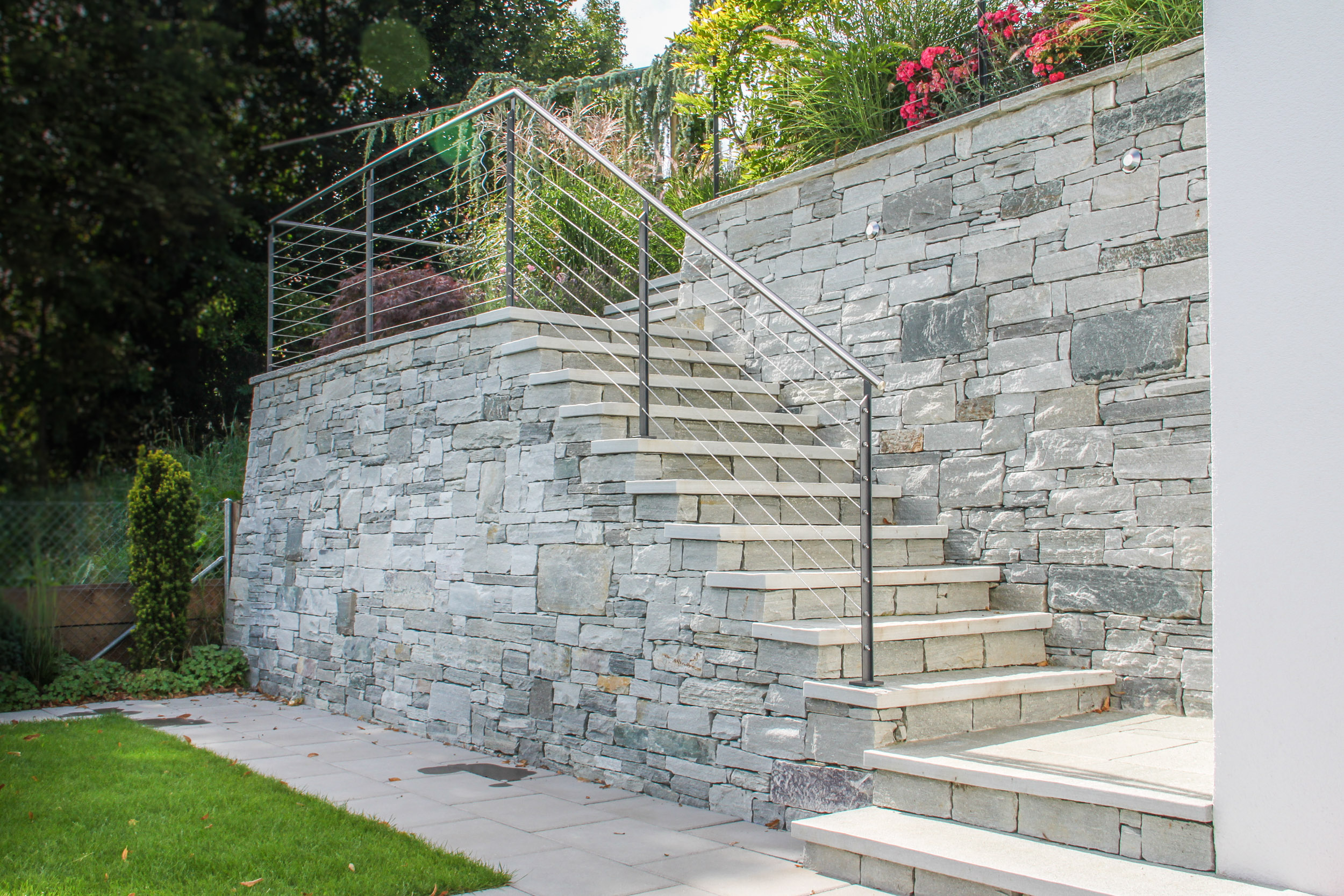 Wir errichten Mauern aus Naturstein oder Betonelementen zur Hangsicherung, zum Auffangen von Böschungen und als Gestaltungselemente. In unserem Steinlager in Wuppenau können Sie auf 6’500 Quadratmetern Fläche eine grosse Auswahl an Schweizer Naturstein von bester Qualität entdecken, unter anderem Rorschacher Sandstein, Guber Naturstein, Calanca-Gneis oder Cristallina aus dem schönen Maggia-Tal. Wer die Einzigartigkeit der Schweizer Steinwelt schätzt, wird bei der Felix Gartenbau AG fündig.