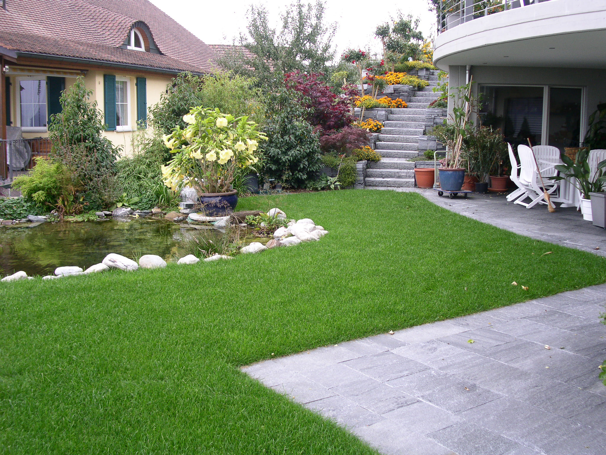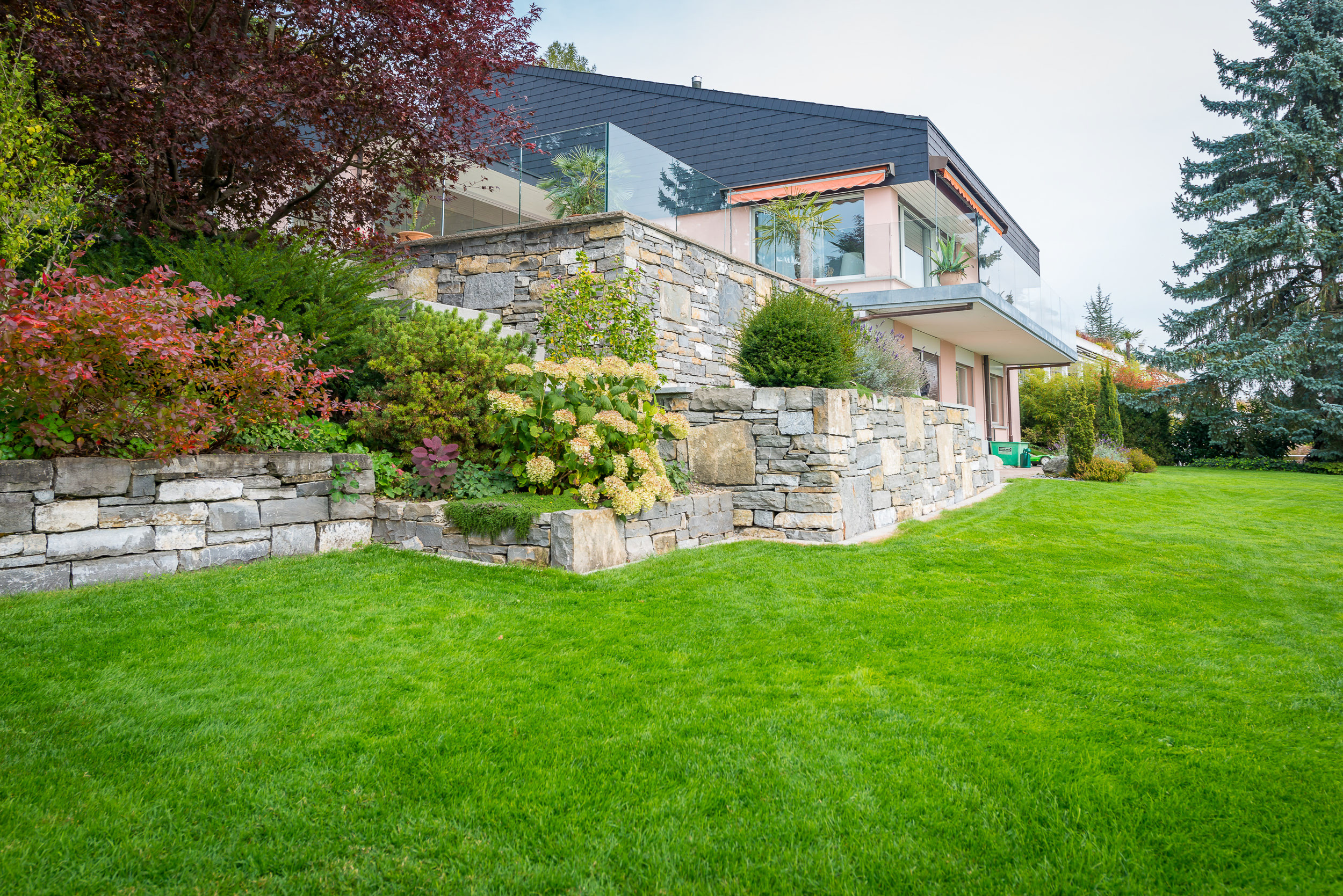 Egal ob Sportrasen, Schattenrasen, Trockenrasen, Blumenwiese oder Wildkräuterwiese – wir stehen Ihnen zur Seite, angefangen von der Neuanlage durch Aussaat oder die Verlegung von Rollrasen über die Rasen-Renovierung mittels Aerifizieren und Vertikutieren bis hin zur Düngung und saisonalen Pflege Ihres grünen Teppichs.